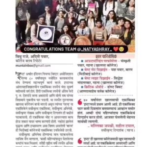 But our dedication has paid off, as we bagged accolades in prestigious competitions like INT (Indian National Theatre), IPTA (Indian People’s Theatre Association) Sawai (सवाई), Ahmednagar Karandak (करंडक) etc. We also won various prizes in inter-collegiate competitions like the Best Director, the Best Writer, the Best Actress, the Best Lighting Arrangements and for Outstanding Performances. Each and every award is a testimony to our hard work and collective spirit. This was possible only with great support of College Management, the Principal, all Teachers, entire Admin Staff and all Students. Through it all, Natyashray नाट्याश्रय stands as more than just a theatre team. We are a family, bound by our love for the stage and a shared dream to keep pushing boundaries.